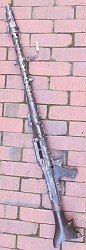 Karabin maszynowy MG-42. Na większości powierzchni metalowych widoczne głębokie wżery, nie ma ich tylko na tłumiku płomienia. Na komorze zamkowej widoczne resztki oksydy. Na wyrzutniku łusek widoczny niekompletny symbol odbioru technicznego. Drewniana kolba spróchniała, nie d...więcej Karabin maszynowy MG-42. Na większości powierzchni metalowych widoczne głębokie wżery, nie ma ich tylko na tłumiku płomienia. Na komorze zamkowej widoczne resztki oksydy. Na wyrzutniku łusek widoczny niekompletny symbol odbioru technicznego. Drewniana kolba spróchniała, nie działa też sprężyna rozporowa w dwójnogu. |