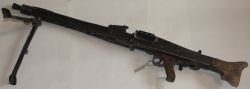 Karabin maszynowy MG34, wersja podstawowa dla piechoty. Na korpusie, przed pokrywą zamka sygnatury: BMD 1939 i 1905 (sygnatura powtórzona czterokrotnie na różnych elementach). Kolba bakelitowa z okuciami żelaznymi (jednego brak). |