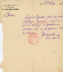 Referencje Kaprala Cyrulika napisana przez dowódcę IV szwadronu 15 pułku Ułanów Poznańskich. Dokument zapisany odręcznie opatrzony pieczęcią Dowództwa 15 pułku Ułanów Poznańskich, oraz datą 25 luty 1921. |