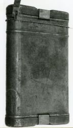 Niemiecki przybornik do czyszczenia karabinu Mauser wz. 1898. Płaskie pudełko z blachy stalowej, zamykane z dwu stron. Klapka na dnie zamyka płytką przegródkę na wycior różańcowy. Wewnątrz wycior o długości 99,5cm, zbudowany z łańcuszka z nanizanymi kulkami aluminiowymi,n...więcej Niemiecki przybornik do czyszczenia karabinu Mauser wz. 1898. Płaskie pudełko z blachy stalowej, zamykane z dwu stron. Klapka na dnie zamyka płytką przegródkę na wycior różańcowy. Wewnątrz wycior o długości 99,5cm, zbudowany z łańcuszka z nanizanymi kulkami aluminiowymi,na końcach haczyk i zaczep, oraz smarowniczka w kształcie walca o średnicy 2cm. Na pokrywie pojemnika wytłoczony symbol: Koło zębate z wpisanym napisem HAWIG i wizerunkiem budynku. |