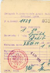 Pokwitowanie składki na Związek Byłych Ochotników Armii Polskiej oddział Lwów. Wystawione 04.07.1939r na nazwisko Jakuba Cyrulika. Poświadcza uiszczenie składki za maj, czerwiec i lipiec 1939r. |