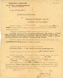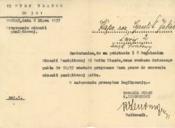Zawiadomienie o przyznaniu kpr. Jakubowi Cyrulikowi prawa do noszenia odznaki pamiątkowej 15 Pułku Ułanów Poznańskich. Dokument podpisany przez dowódcę pułku płk. K. Zembrzuskiego. |
