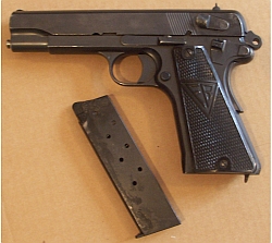 Pistolet VIS wz. 35, kal. 9mm. Magazynek ośmionabojowy na amunicję 9x19 Parabellum. Numer broni 31929 bity po prawej stronie, z lewej strony Polski orzeł w koronie i napisy: F B RADOM 1939r Vis-wz.35 pat. Nr. 15567. Lekkie ślady korozji po prawej stronie zamka, w okolicach wylotu l...więcej Pistolet VIS wz. 35, kal. 9mm. Magazynek ośmionabojowy na amunicję 9x19 Parabellum. Numer broni 31929 bity po prawej stronie, z lewej strony Polski orzeł w koronie i napisy: F B RADOM 1939r Vis-wz.35 pat. Nr. 15567. Lekkie ślady korozji po prawej stronie zamka, w okolicach wylotu lufy, oraz po lewej stronie, przy nasadzie bezpiecznika. |