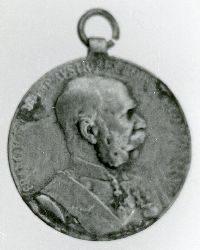 Medal z okazji 50-lecia panowania cesarza Franciszka Józefa. Awers: Popiersie cesarza otoczone legendą FRANC.IOS.D.G.IMP.AVSTR.REX.BOH.ETC.AC.AP.REX.HVNG. Rewers: Na obrzeżu daty MDCCCXLVIII-MDCCCXCVIII, w środku napis SIGNVM MEMORIAE w wieńcu z liści lauru i dębu. Brak wstęgi ...więcej Medal z okazji 50-lecia panowania cesarza Franciszka Józefa. Awers: Popiersie cesarza otoczone legendą FRANC.IOS.D.G.IMP.AVSTR.REX.BOH.ETC.AC.AP.REX.HVNG. Rewers: Na obrzeżu daty MDCCCXLVIII-MDCCCXCVIII, w środku napis SIGNVM MEMORIAE w wieńcu z liści lauru i dębu. Brak wstęgi (oryginalnie czerwona). |