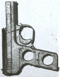Całość bardzo skorodowana, brak lufy, wszystkich mechanizmów, magazynka, nakładek rękojeści i bocznej, lewej nakładki metalowej przykrywającej mechanizm mechanizm spustowo- kurkowy. |