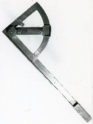 Kwadrant artyleryjski używany w do mierzenia kąta podniesienia lufy i sprawdzania dokładności wskazań celownika. Składa się z dwu ramion połączonych łukiem z podziałką wyskalowaną do 90 stopni i ruchomego ramienia z poziomicą. Na dłuższym ramieniu wygrawerowany napis w ...więcej Kwadrant artyleryjski używany w do mierzenia kąta podniesienia lufy i sprawdzania dokładności wskazań celownika. Składa się z dwu ramion połączonych łukiem z podziałką wyskalowaną do 90 stopni i ruchomego ramienia z poziomicą. Na dłuższym ramieniu wygrawerowany napis w języku rosyjskim: Artilieryjskaja Tiechniczieskaja Szkoła 1854 goda. |