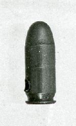 Nabój do pistoletu Colt M 1911. Łuska przewiercona. Na dnie łuski wybite : REM-UMC 45 ACP . |