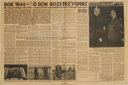 Niemiecka gazeta propagandowa dla polskiej wsi "Nowiny" nr 75 ze stycznia 1944r. Czarno-biała, drukowana jednostronnie. |