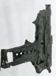 Pistolet Walther P 38. Egzemplarz silnie skorodowany (destrukt). Nieczytelne sygnowania, brak okładzin, osłony spustu oraz części lufy. |