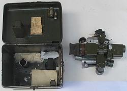 Celownik artyleryjski w metalowym futerale. Na skrzynce namalowany napis:MPM-44 13542. Do skrzynki przymocowana parciana taśma. Obudowa celownika pomalowana jest na kolor khaki (część części malowana na czarno, niektóre stalowe oksydowane). Wszystkie skale czytelne. Na obudowie ...więcej Celownik artyleryjski w metalowym futerale. Na skrzynce namalowany napis:MPM-44 13542. Do skrzynki przymocowana parciana taśma. Obudowa celownika pomalowana jest na kolor khaki (część części malowana na czarno, niektóre stalowe oksydowane). Wszystkie skale czytelne. Na obudowie wybite: 93 (w otoku) MPM-44; B13542;1953. Wewnątrz futerału książka sprzętu optyczno-mierniczego. |
