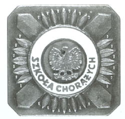 Pamiątkowa oznaka absolwenta Szkoły Chorążych. Wykonana ze stali oksydowanej o kształcie kwadratu. W centrum odznaki orzeł PRL na biało czerwonej tarczy, otoczonej białą wstęgą z napisem SZKOŁA CHORĄŻYCH. Tło stanowią stylizowane miecze i promienie. Odwrocie z mocujący...więcej Pamiątkowa oznaka absolwenta Szkoły Chorążych. Wykonana ze stali oksydowanej o kształcie kwadratu. W centrum odznaki orzeł PRL na biało czerwonej tarczy, otoczonej białą wstęgą z napisem SZKOŁA CHORĄŻYCH. Tło stanowią stylizowane miecze i promienie. Odwrocie z mocującym trzpieniem i mosiężna nakrętką. |