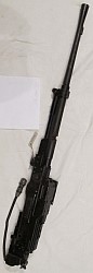 Lotniczy ciężki karabin maszynowy PKT/PKL 7,62mm. Działa na zasadzie odprowadzania gazów prochowych przez boczny otwór w lufie. Zasilanie taśmą. |