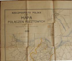 Mapa połączeń pocztowych w Rzeczpospolitej Polskiej wydana przez ministerstwo Poczt i Telegrafów. Skala 1:600 000. |