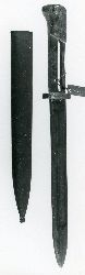 Bagnet wz. 1924, produkcji polskiej, przystosowany do karabinu Mauser wz. 98. W komplecie z pochwą. Rękojeść stalowa, brak okładzin drewnianych. Trzpień rękojeści sygnowany literą B. Na głowicy, obok zatrzasku sygnatura Wz.24. Głownia stalowa, długości 24,3cm, z pojedynczy...więcej Bagnet wz. 1924, produkcji polskiej, przystosowany do karabinu Mauser wz. 98. W komplecie z pochwą. Rękojeść stalowa, brak okładzin drewnianych. Trzpień rękojeści sygnowany literą B. Na głowicy, obok zatrzasku sygnatura Wz.24. Głownia stalowa, długości 24,3cm, z pojedynczym szerokim zbroczem. U nasady głowni wytłoczony orzeł polski i litery W.P. Na przeciwległym płazie sygnatury: PERKUN, D w owalu i nie w pełni czytelny numer **20737**. Pochwa z blachy stalowej, brak zaczepu żabki, pomalowana na kolor khaki. Dławik pochwy mocowany śrubka. |