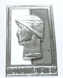 Złota odznaka Wzorowego Żołnierza, wykonana z tłoczonej blachy mosiężnej w kształcie prostokąta. W części centralnej na biało-czerwonej tarczy złota głowa żołnierza w hełmie z gałązkami. W dolnej części na listwie napis WZOROWY ŻOŁNIERZ. Całość obramowana podw...więcej Złota odznaka Wzorowego Żołnierza, wykonana z tłoczonej blachy mosiężnej w kształcie prostokąta. W części centralnej na biało-czerwonej tarczy złota głowa żołnierza w hełmie z gałązkami. W dolnej części na listwie napis WZOROWY ŻOŁNIERZ. Całość obramowana podwójną listwą. Na odwrocie metalowy trzpień i mosiężna nakrętka. |
