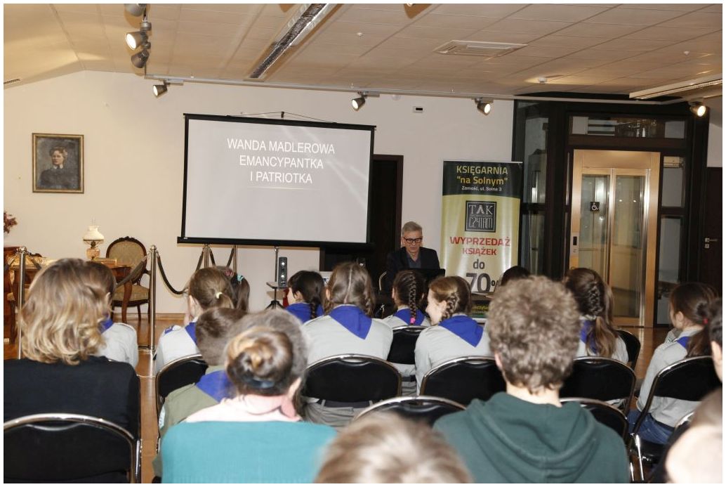 W piątek 14 grudnia 2018 r. w Muzeum Fortyfikacji i Broni Arsenał odbyło się oficjalne podsumowanie i zakończenie projektu "Szlakiem Emancypantek i Patriotek". Gościem specjalnym wydarzenia był Marek Kołcon - pedagog, historyk, regionalista. Przybliżył on zebranym postać Wandy Madlerowej - Emancypantki i Patriotki w kontekście wydarzeń związanych z II wojną światową. Był to czas kiedy nie tylko umiejętności z zakresu pomocy rannym i pracy sztabowej były potrzebne. Nie mniejsze znaczenie miała też zwykła kobieca czułość i współczucie dla drugiego człowieka.