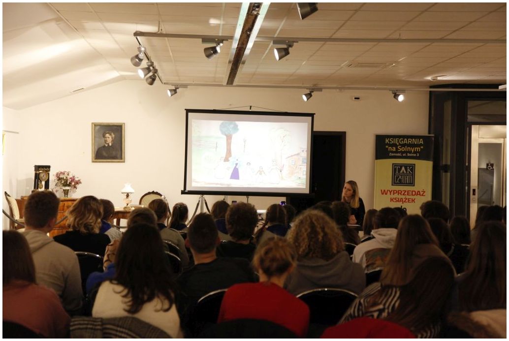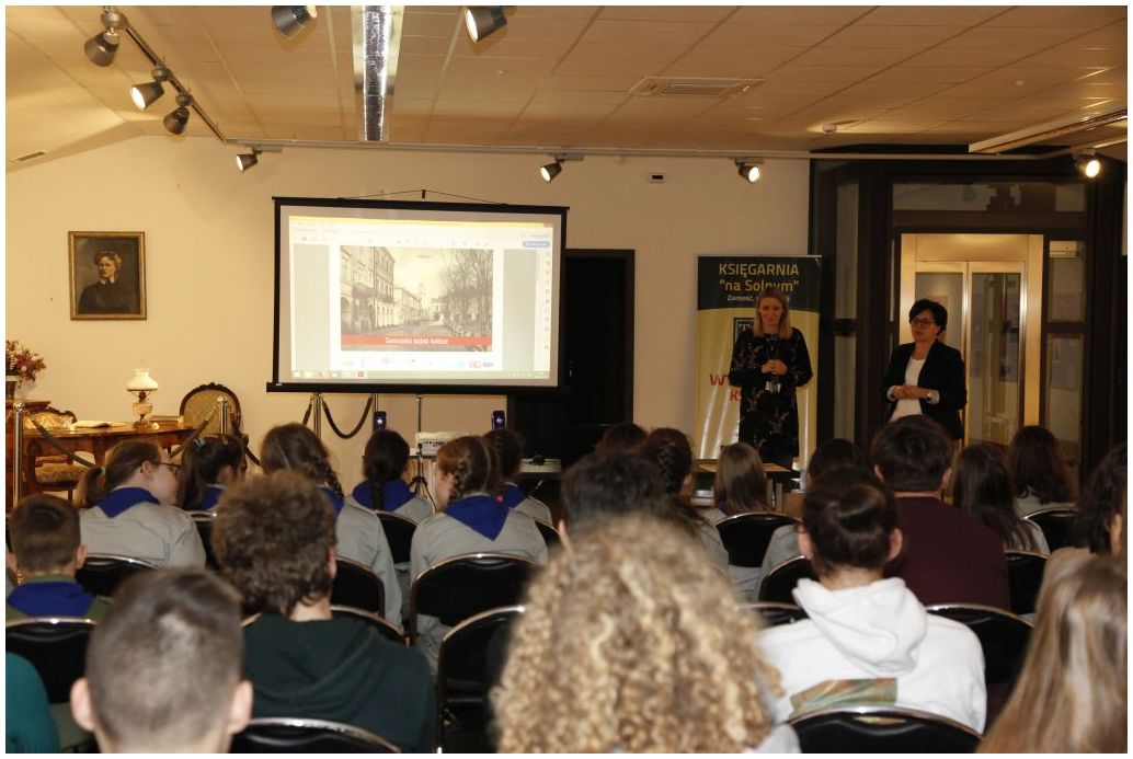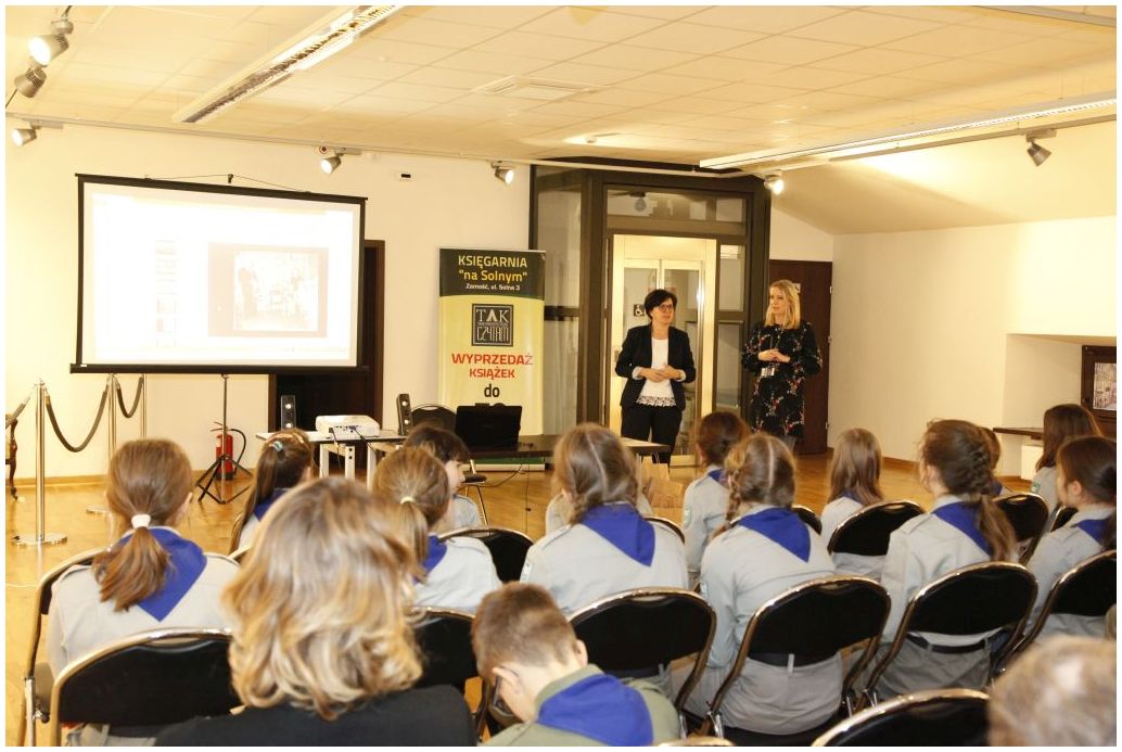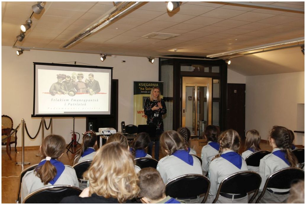 W drugiej części spotkania nastąpiło podsumowanie prowadzonych działań. Projekt został przygotowany z okazji 100 - lecia przyznania praw wyborczych kobietom w Polsce. Działania projektowe prowadzone były od 12 września do 14 grudnia 2018 r. Główną ideą projektu było promowanie postaw patriotycznych poprzez szerzenie wiedzy dotyczącej roli jaką odegrały kobiety w historii Polski i przybliżenie uwarunkowań w jakich przyszło im żyć w XIX i I poł. XX w. Oś projektu stanowiła wystawa "Emancypantki i Patriotki wizerunki walczących Polek XIX i XX wieku". Wystawa przedstawiała kobiety, które od czasów zaborów prowadziły podwójną walkę o niepodległość i równouprawnienie. W ramach wystawy przygotowany został szeroki program wydarzeń towarzyszących: oprowadzania kuratorskie po wystawie, wykłady i warsztaty tematyczne. W czasie trwania projektu opracowany został "Zamojski Szlak Kobiet" - ścieżka edukacyjno - turystyczna oraz powstała krótka animacja filmowa pt. "Droga Bohaterek".