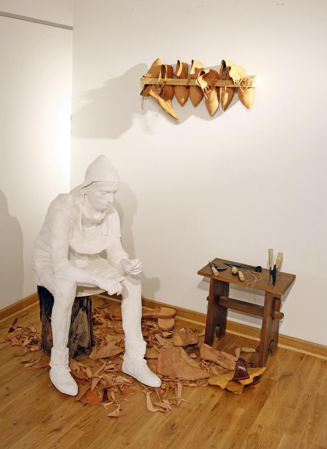 - rekonstrukcję XV-wiecznego warsztatu szewskiego z licznymi kopiami obuwia oraz narzędzi;